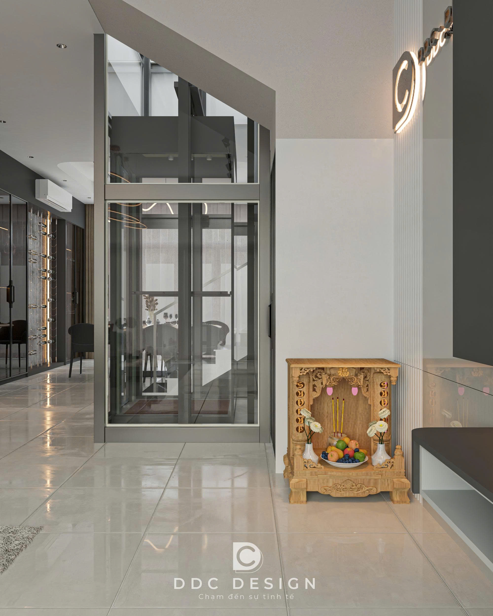 ✅ Trục thang máy kính giữa nhà: Một giải pháp di chuyển tiện nghi và là điểm nhấn kiến trúc xa xỉ, phá vỡ mọi giới hạn của một căn biệt thự thông thường.
