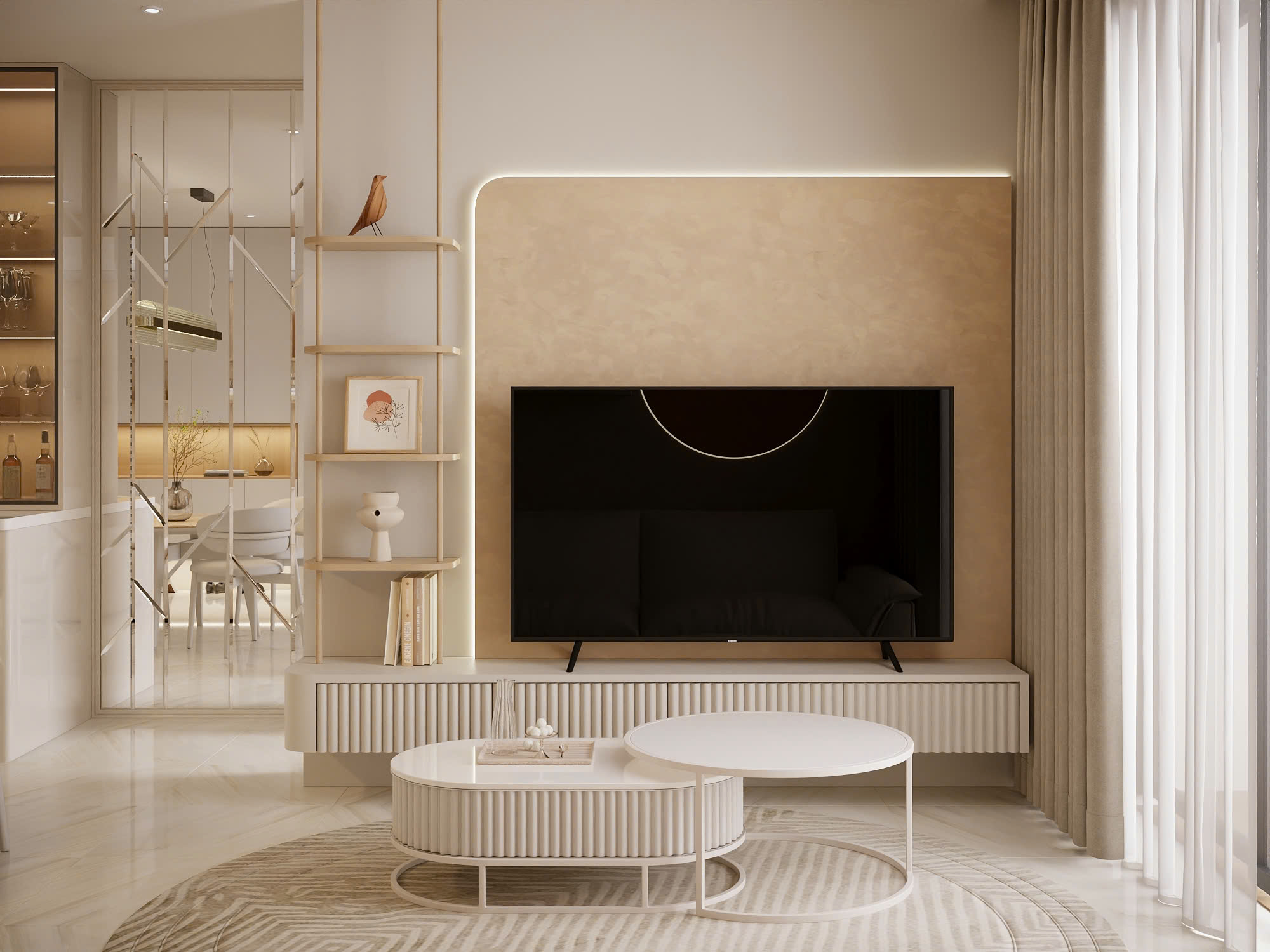 🌿 Những đường cong ôm ấp: Từ kệ trang trí hình vòm cung, góc tủ bo tròn mềm mại đến những món đồ nội thất với đường nét uyển chuyển… tất cả phá vỡ sự đơn điệu của những đường thẳng, mang đến nét duyên dáng, nữ tính và cảm giác được che chở, vỗ về.